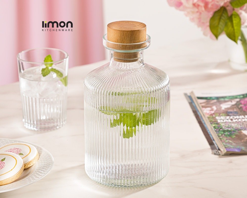 Elevate your kitchen or dining experience with the 1.35 Liter Glass Carafe with Wooden Lid (2271) by Limon. Crafted from premium, high-quality glass with a natural wooden lid, this carafe combines elegance, functionality, and luxury. Perfect for serving water, juice, wine, cocktails, or storing dry ingredients, the carafe maintains freshness while adding a sophisticated touch to your countertop, pantry, or dining table. Ideal for daily use, entertaining guests, or gifting.