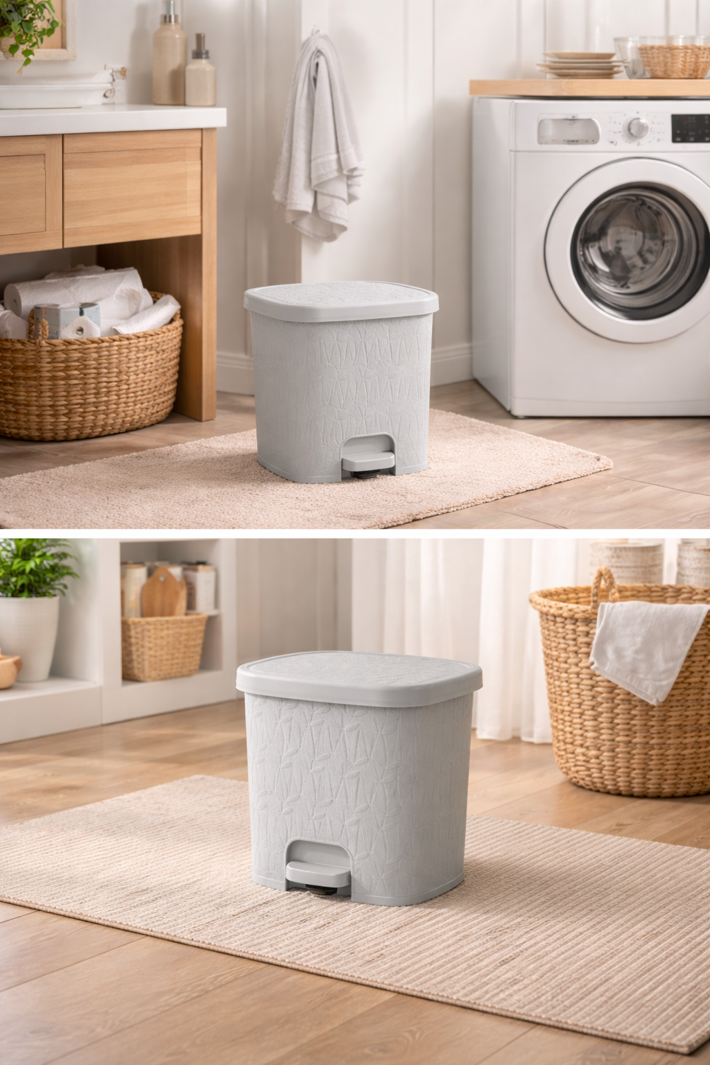 Bring style and convenience together with the 6L Bamboo-Style Dustbin with Pedal by Limon, a must-have addition to any modern home or workspace. Crafted with a sleek bamboo-inspired exterior, this dustbin enhances your décor while offering a practical waste management solution.