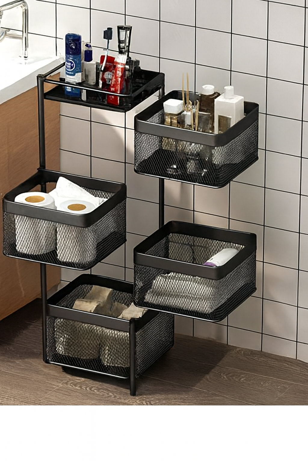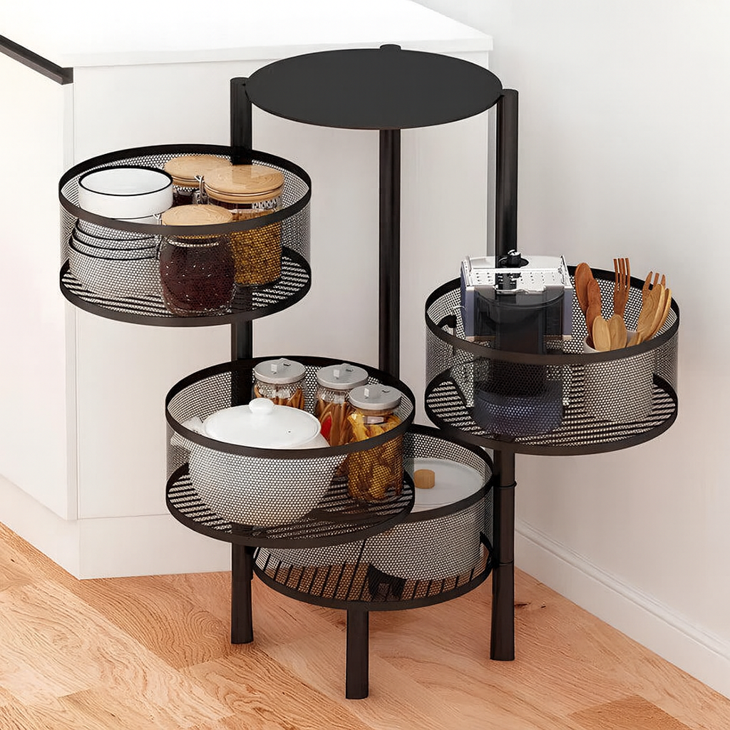 Durable 3 & 4 Tier Metal Vegetable Basket with sleek mesh design, space-saving vertical storage, perfect for organizing fruits, vegetables, and kitchen essentials.