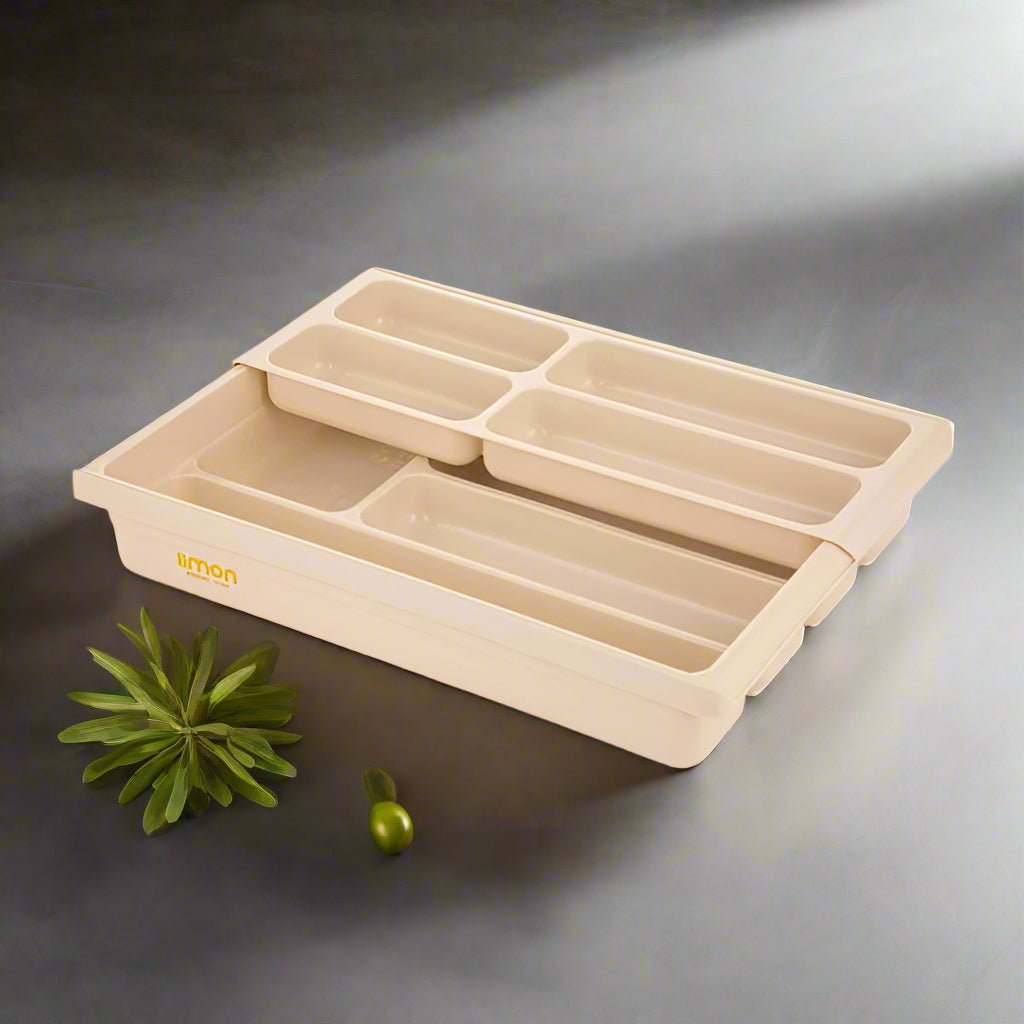 Keep your kitchen neat and stylish with the Limon 2-Layer Cutlery Holder (Plastic). This space-saving organizer offers two roomy compartments for spoons, forks, knives, and more. Made from durable plastic with a ventilated design, it ensures quick drying and hygienic storage—perfect for everyday use.
