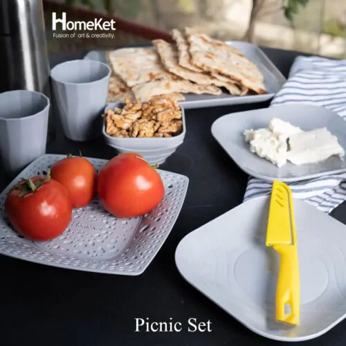 High-quality original Limon 60-piece dinner picnic set is available for 6-persons with airtight four locks and a sturdy handle that makes it easy to carry for a long distance, made for long-lasting use, and very easy to clean. Made in Iran.
