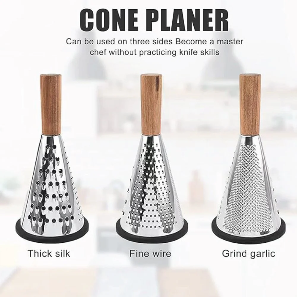 - 3‑Sided Versatility: Includes fine, medium, and coarse surfaces for cheese, vegetables, fruits, and more.
