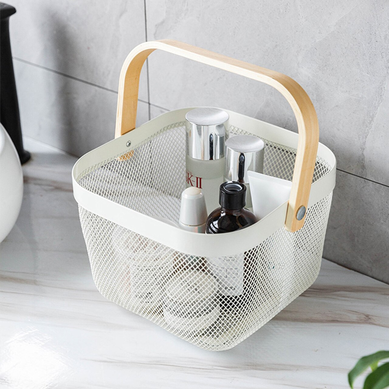Metal Food Storeg Basket with Wooden Handle