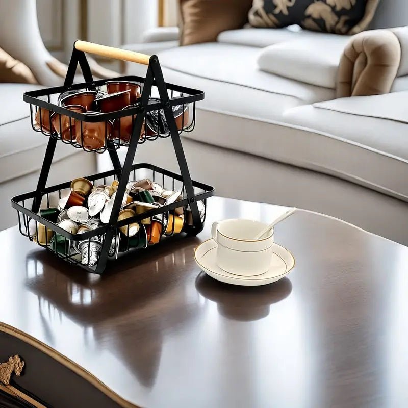Upgrade your kitchen organization with the  2-Tier Carry & Serve Fruit Basket a stylish blend of elegance and practicality. Featuring a durable metal frame, detachable double-tier design, and a smooth wooden handle, this versatile basket is perfect for neatly displaying fruits, vegetables, or snacks while saving valuable counter space. Its sleek powder-coated finish and compact footprint make it an eye-catching yet functional addition to any modern home