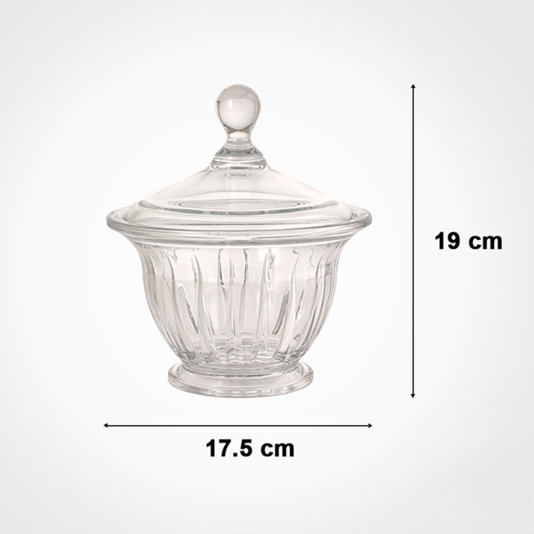- Crystal-Clear Body for tempting presentation of sweets, snacks, or dry fruits