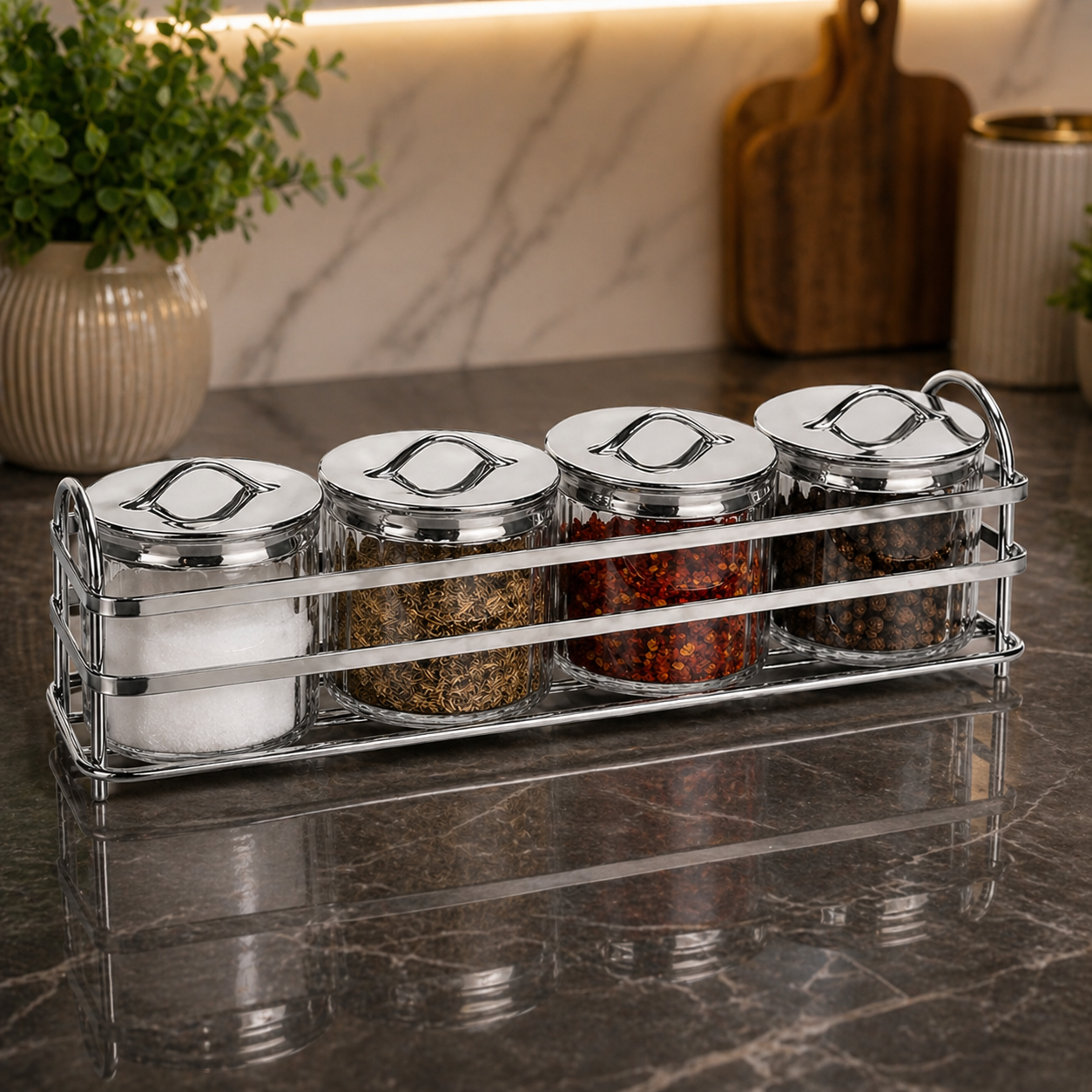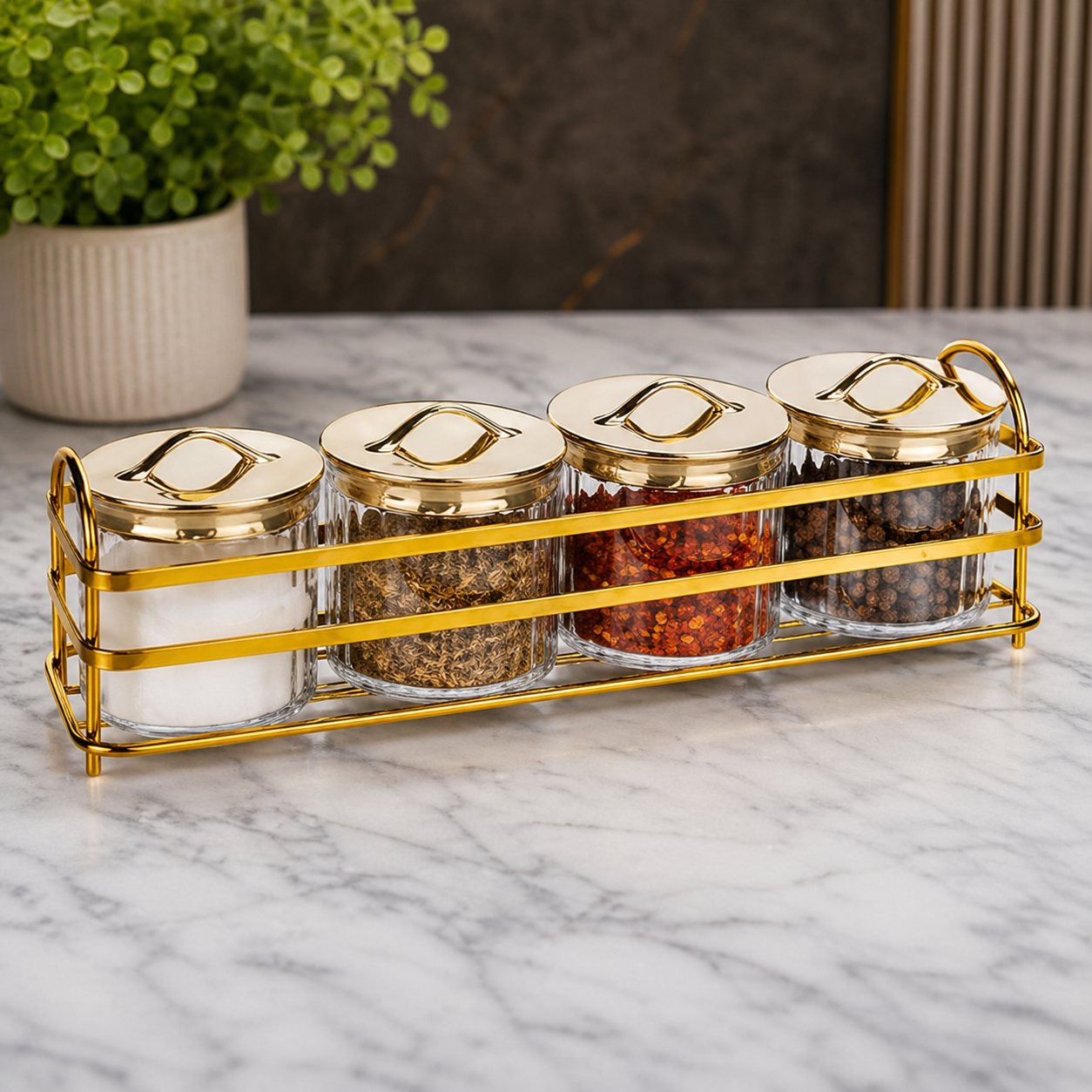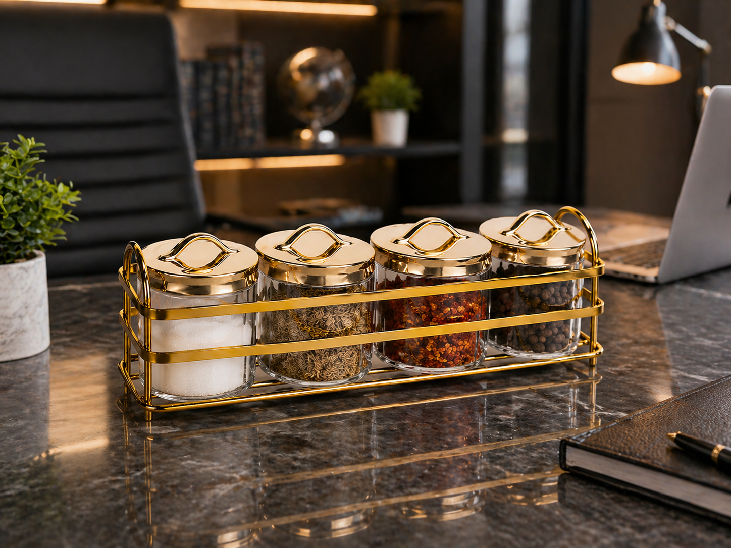 Transform your cooking space into a stylish haven with the Luxury Violet Spice Set. Designed for both practicality and aesthetics, this set features premium violet-colored spice jars elegantly arranged on a dual-tone golden and silver stand. Whether you’re a passionate home chef or someone who values organized living, this spice set adds a touch of sophistication to your kitchen while keeping your favorite seasonings within easy reach. Its durable build ensures long-lasting use, while the vibrant violet jars bring a pop of color to your countertop.