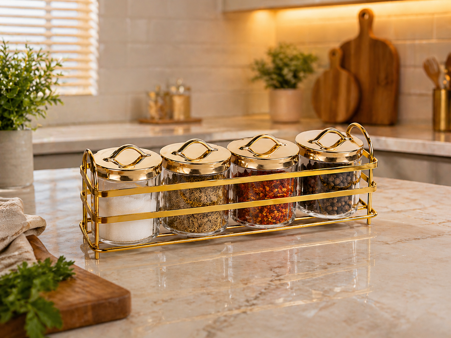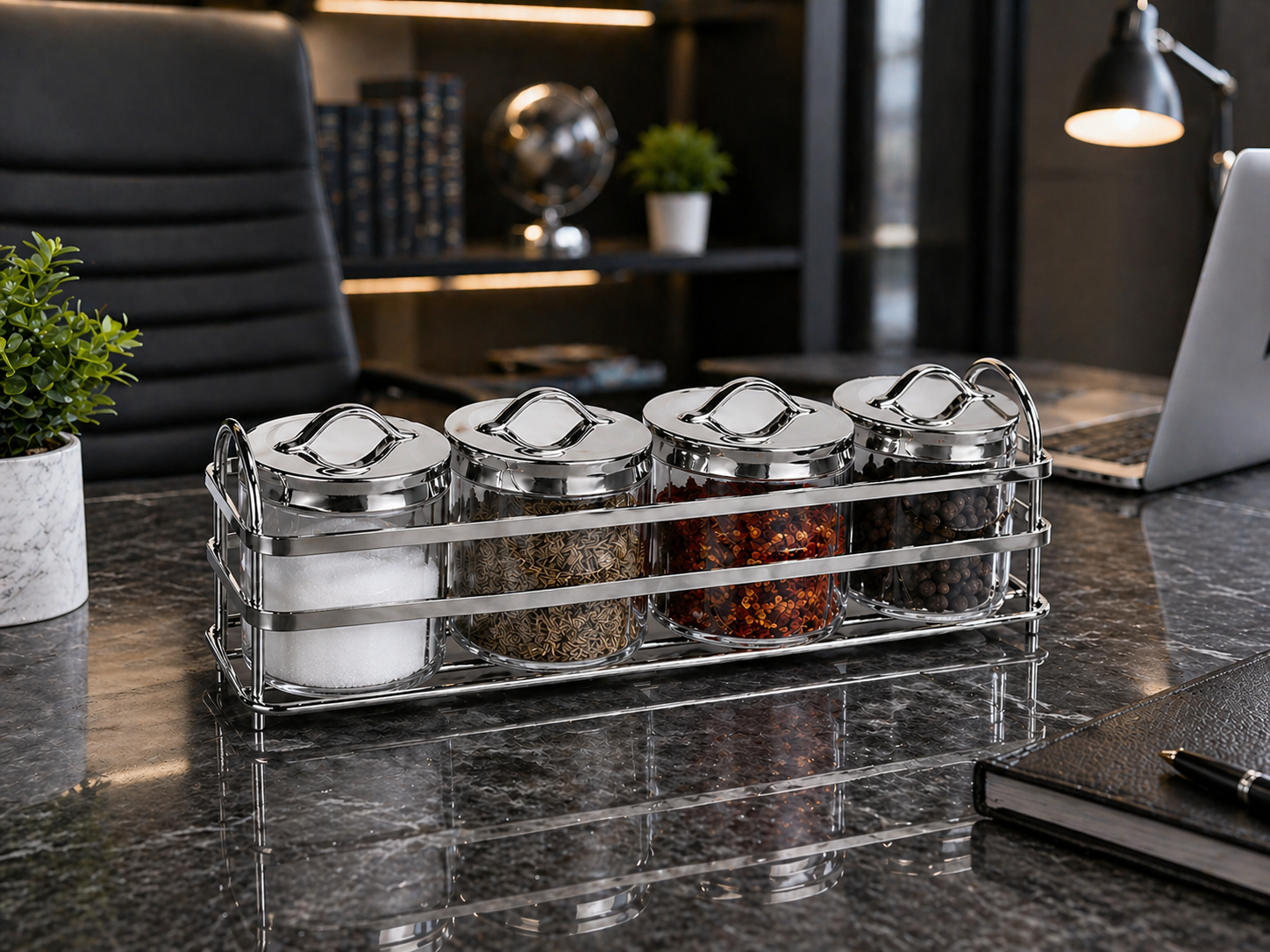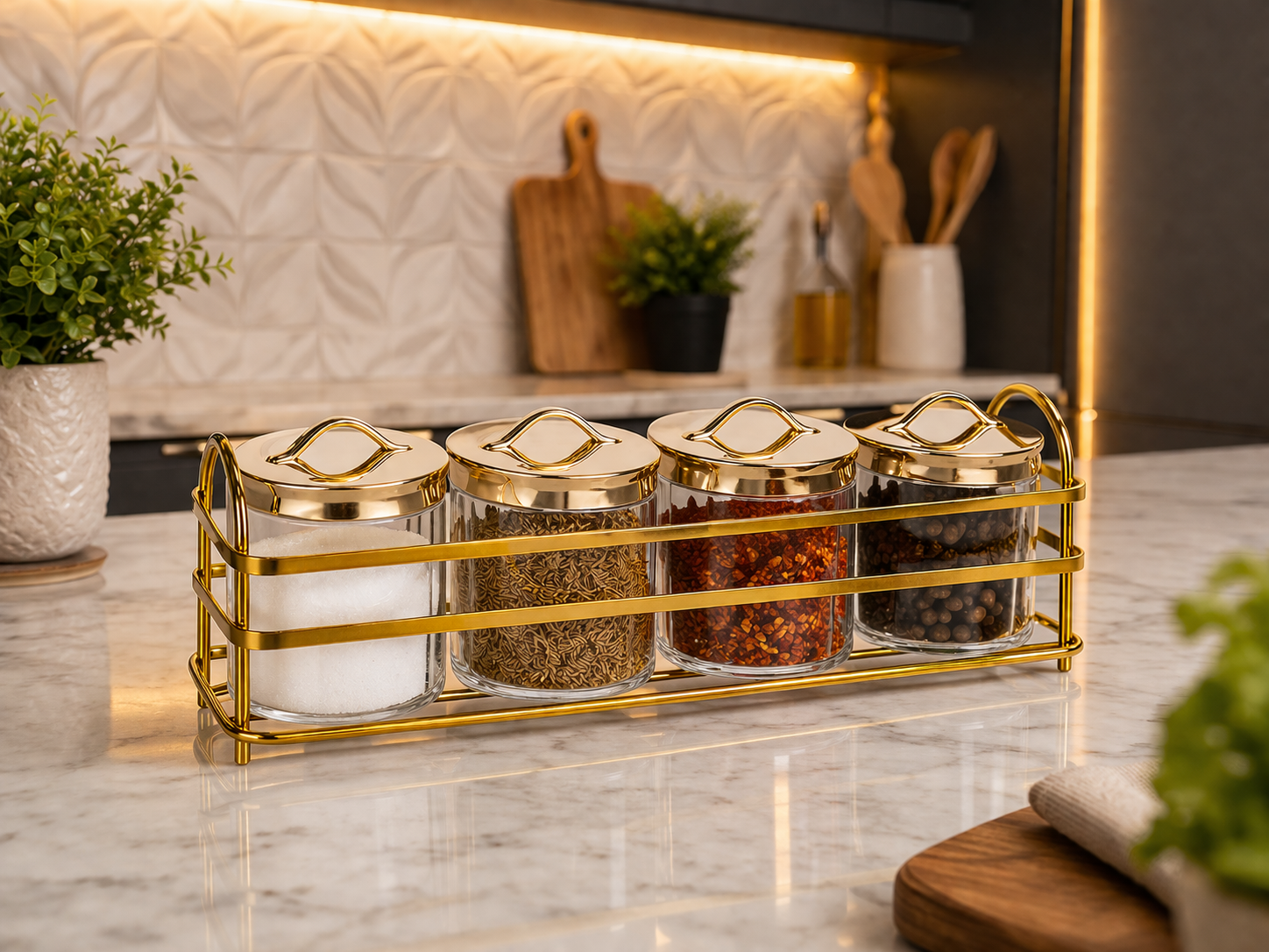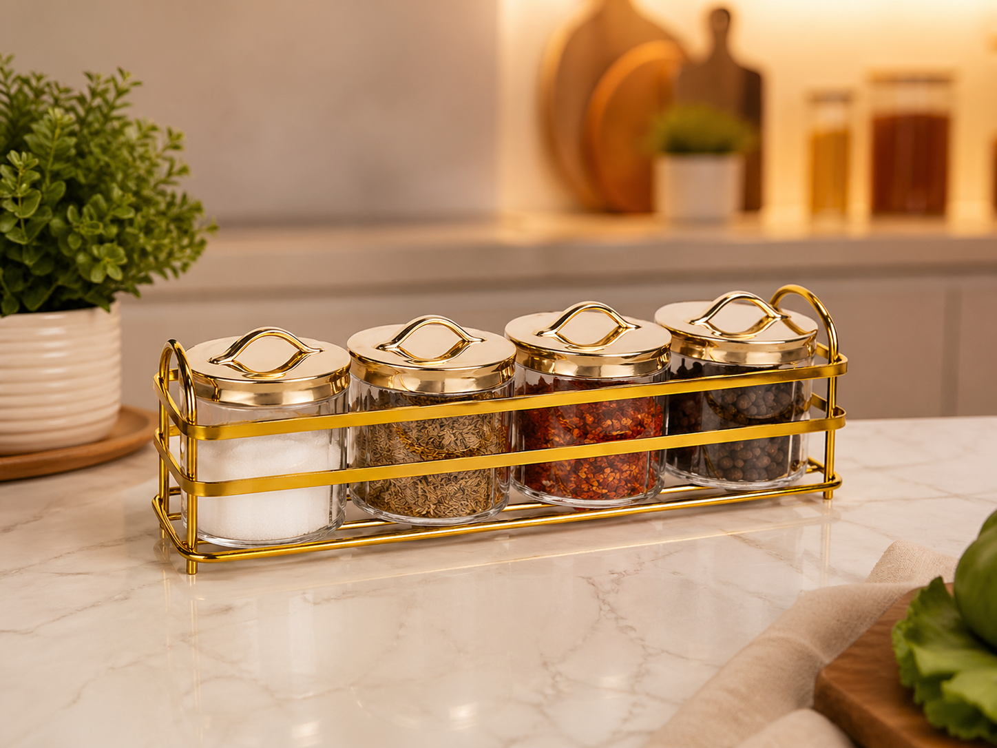 Transform your cooking space into a stylish haven with the Luxury Violet Spice Set. Designed for both practicality and aesthetics, this set features premium violet-colored spice jars elegantly arranged on a dual-tone golden and silver stand. Whether you’re a passionate home chef or someone who values organized living, this spice set adds a touch of sophistication to your kitchen while keeping your favorite seasonings within easy reach. Its durable build ensures long-lasting use, while the vibrant violet jars bring a pop of color to your countertop.